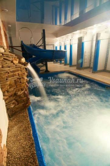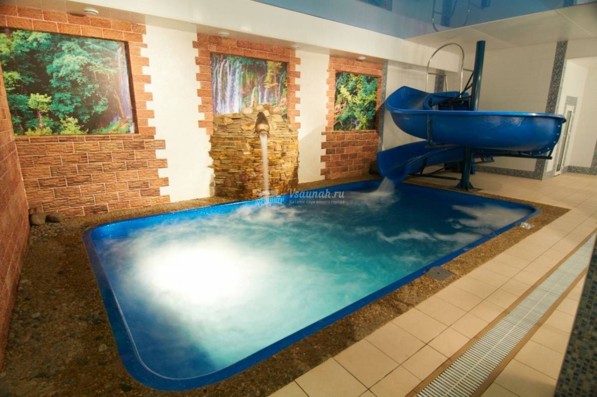 Бассейн, Размеры (Ш x Д x Г), м: 7 x 4 x 1.5, Теплый бассейн, Детские горки, Фонтан, Фильтрация,
